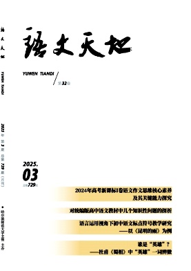 《语文天地》杂志是由哈尔滨师范大学主办的全国中文核心期刊全国优秀语文期刊是专门研究中学语文教学改革和考试的教学辅导类期刊。本刊积极倡导一纲多本的教学改革,推进素质教学理念及教学方法,为优秀的教学实验、教学实录等提供展现教师才智的舞台,探索高考中考命题规律,充分体现教与学、学与考的有机结合。 本刊将立足于“扬弃、适度、原创、开放”的科学理念,继续保持形式多样、选题宽广、视角新颖、观点敏锐的特色优势,以实用性为主旋律,全方位、高层次、持久性地增强教学指导性,密切关注当前中学教育教学深化改革的情况,紧跟新课程改革前进的步伐,及时反映考试命题模式多元化的态势,从而为中学教学服务,为提高广大中学教师的专业化水平服务,全面推进素质教育。月刊,国际大开本80面,每月1日出版。