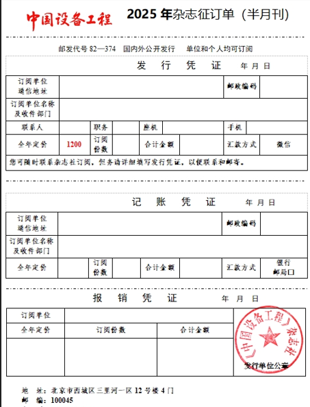 《中国设备工程》栏目具体内容涉及范围广泛,主要涉及重大装备制造、低碳技术及设备、冶金、石油石化、航空航天、船舶、铁道、军工、化工、有色、机械、电力、电子、煤炭、纺织、汽车等领域。